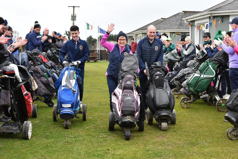 Ladies Captain Joan Moran, Mens Captain Gerry Sully and Junior Captain Jamie Callan got the event under way over the weekend