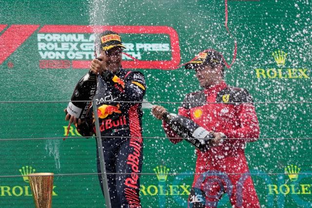 Verstappen fended off an aggressive Leclerc on the opening lap before he fell to third after the Ferrari drivers stopped early for tyres under the Virtual Safety Car.