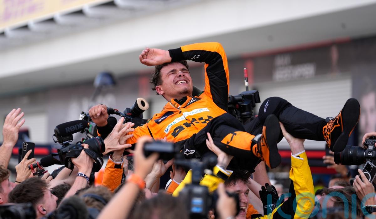 They hoisted him into the air as a host of drivers – including fellow Briton George Russell and Daniel Ricciardo, the last man to win for McLaren in Monza in 2021 – came over to congratulate Norris.
