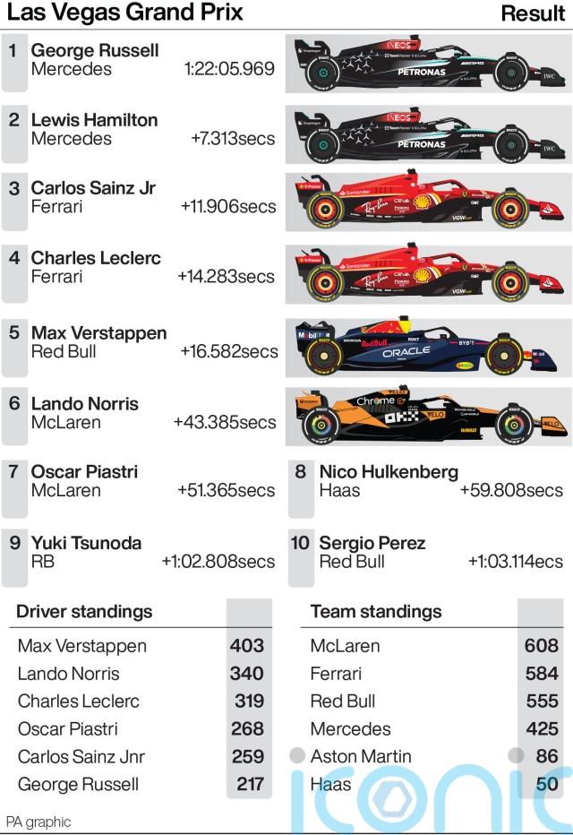 Russell’s team-mate Lewis Hamilton drove back from 10th to complete a British one-two for the Silver Arrows.