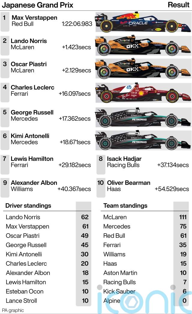 His fourth successive Japanese Grand Prix win saw Verstappen cut Norris’ championship lead to just a single point.