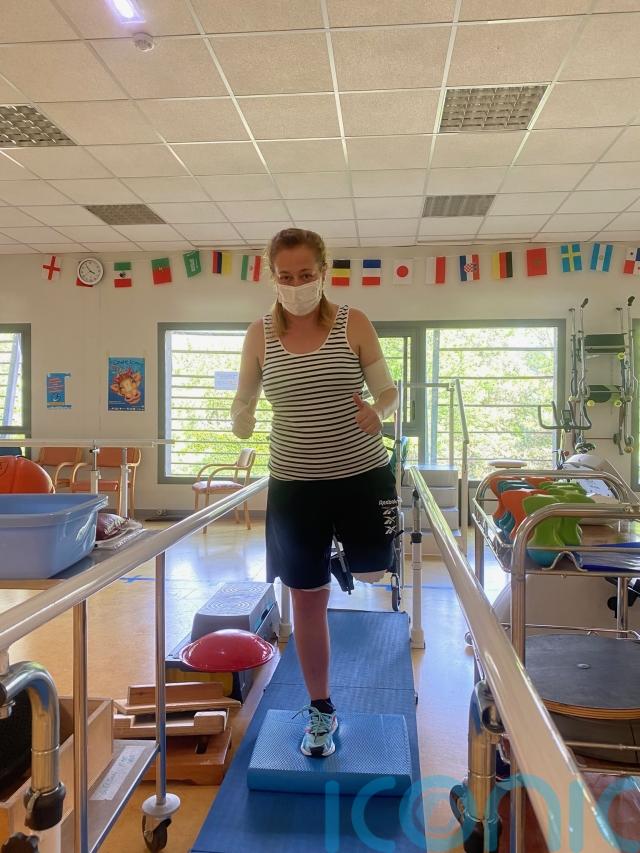 She remained in hospital until July 2025 while her wound healed, and had to relearn how to walk with a prosthetic.