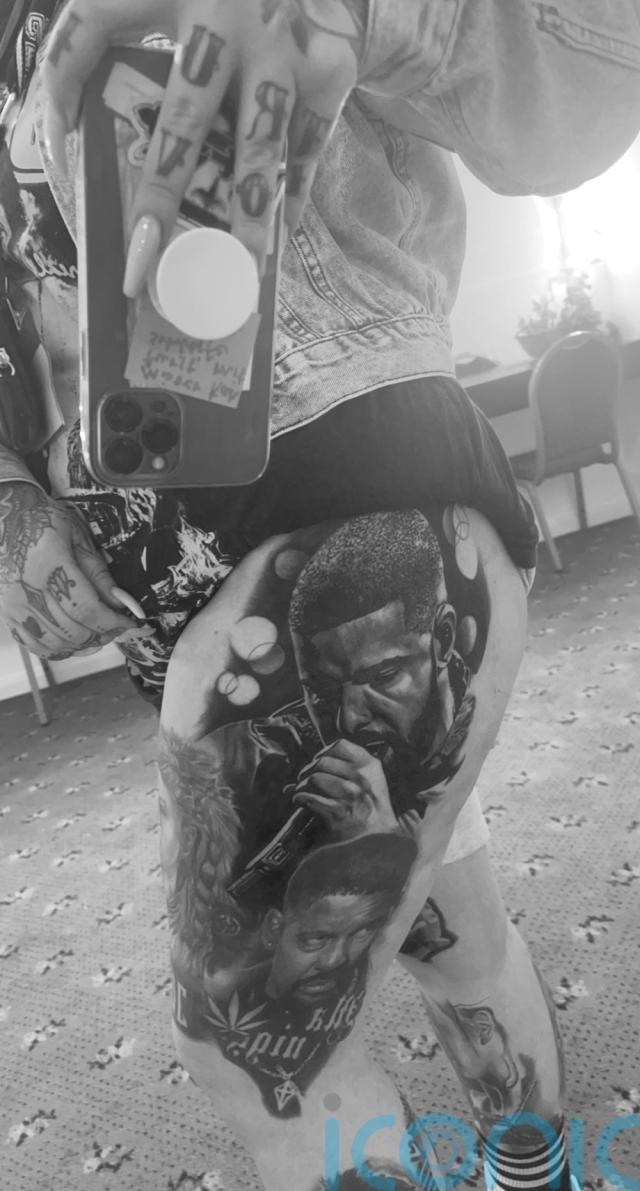 She has chosen to have two revolvers on her chest and a number of portraits on her legs, by her friend and tattoo artist Steve Upton – including former porn star Christy Mack on her right shin, rapper Drake on her right thigh, Will Smith on her right calf and rapper Snoop Dogg on her left calf.
