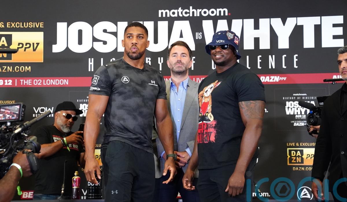 It is understood Joshua could still fight at London’s O2 Arena as Matchroom seek a late replacement opponent for the former two-time world heavyweight champion but Whyte faces a battle to clear his name.