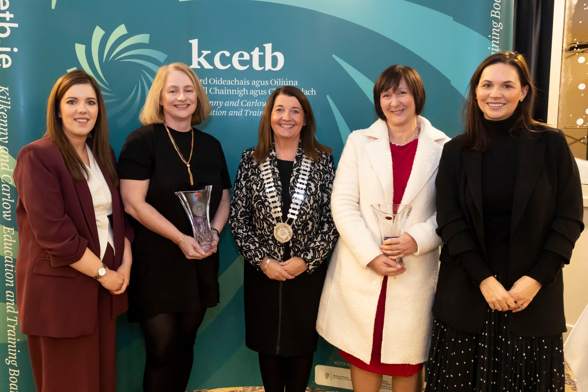 Pictured below is Gaelcholaiste Cheatharlach retirees Sharon Tennyson and Anne Reynolds with Orlagh NiFhaolain, Cllr Andrea Dalton and Caoimhe Ui Fhearail.