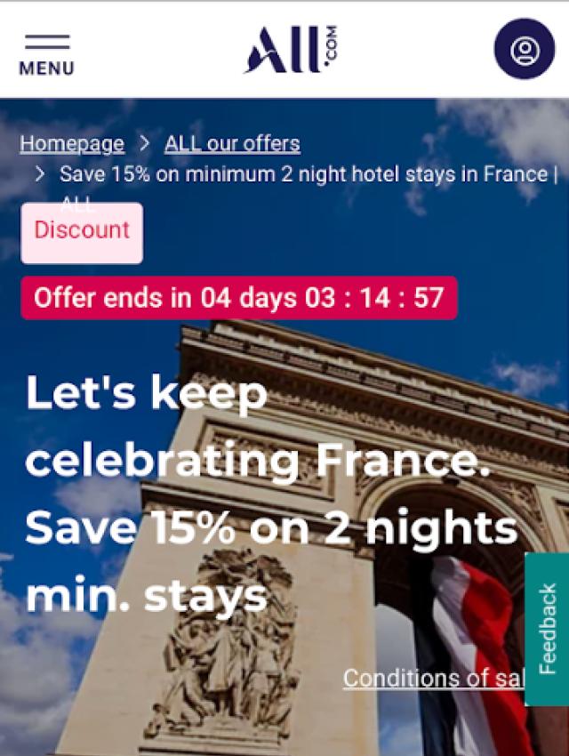 In July and August, Accor ran a 15% off member exclusive offer for its French hotels on Facebook, advertising rates for a Mercure property near the Eiffel Tower “from £129” a night, based on a two-night stay.