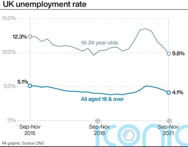 The figures also revealed that the unemployment rate for the three months to November fell back almost to where it was before Covid, to 4.1% from 4.2% in the previous quarter and close to the 4% level seen in the last pre-pandemic quarter.