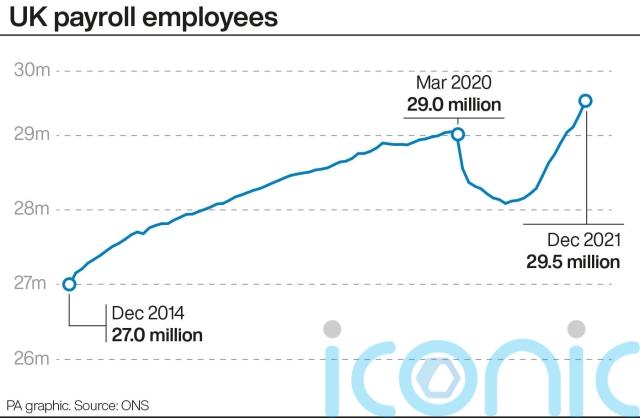 The latest figures from the ONS also showed there was no sign of a jobs hit from the Omicron variant of coronavirus sweeping the UK, with a record rise in payrolled workers.