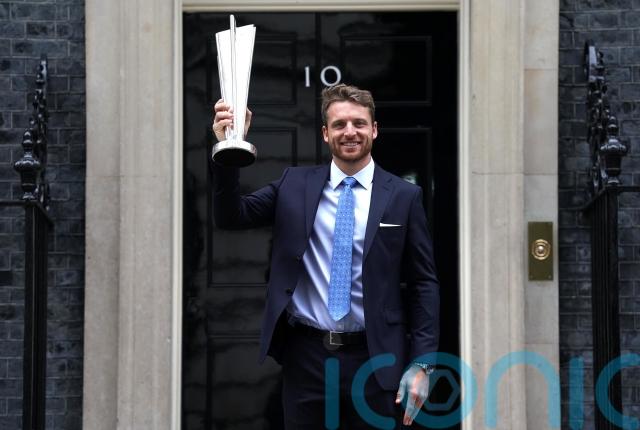 He then tried his hand at batting and bowling, before Buttler and his team-mates emerged after around an hour, posing for photographs with the World Cup trophy as they departed.