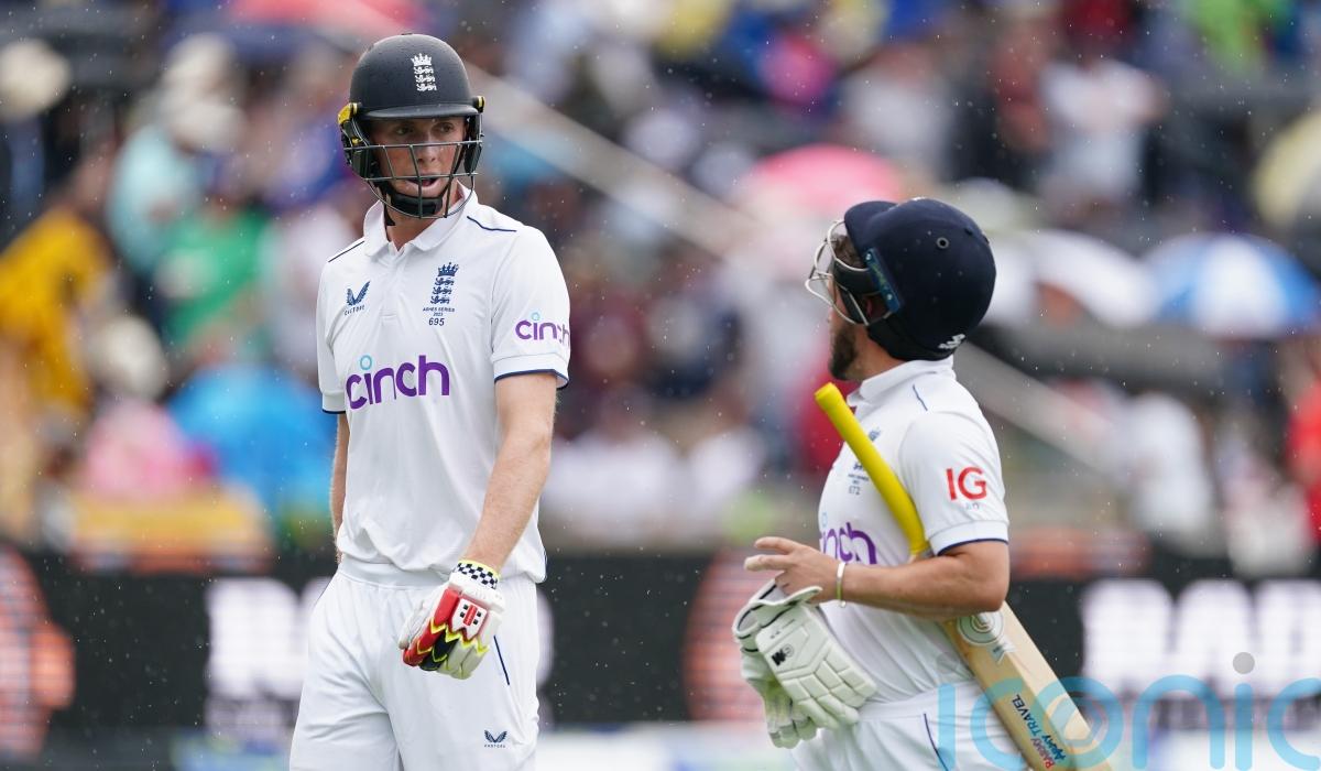 England lost Ben Duckett and Zak Crawley in consecutive overs in desperately difficult batting conditions in a mini afternoon session slotted awkwardly between two heavy rain showers.