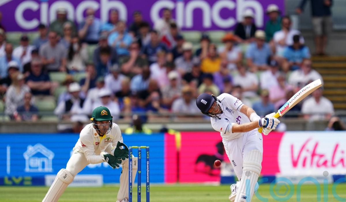 Root set the tone with an audacious start to the day’s play, attempting his trademark reverse ramp off Pat Cummins’ first delivery of the morning.