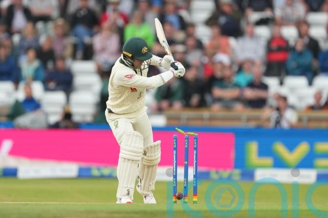 England were up and running now and quickly lined Alex Carey up as their next victim. Fresh from his role in the Lordās stumping controversy, as well spurious rumours about an unpaid hairdressing debt, he groped haplessly at Stuart Broad, edged one through the cordon and then brought down his own stumps as he deflected a wobbling Woakes delivery into them.