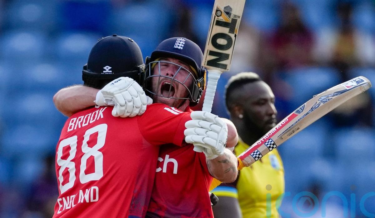 Salt’s efforts left England needing 21 off the final over but Brook followed up a four with three sixes in four balls off Andre Russell as the tourists narrowed the deficit to 2-1 in the five-match series.