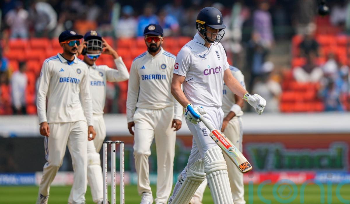 Zak Crawley was an early casualty as England set about the mammoth task of overturning India’s 190-run lead on day three of the first Test in Hyderabad.
