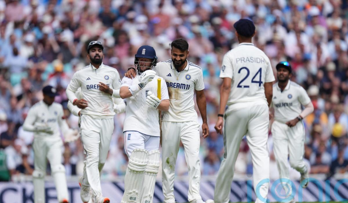 Bethell hit one glorious four through cover point but was pinned off the next ball, cutting short his first Test innings of the year. Krishna returned to remove Jamie Smith and Jamie Overton before the interval but Harry Brook rode his luck to remain in place on 33 not out despite some wild flourishes.