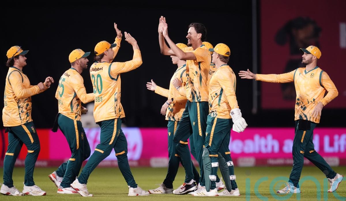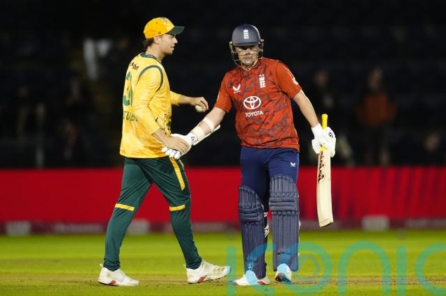 South Africa had reached 97 for five from 7.5 overs – hitting nine sixes in total – before a short shower ended their effort and left England with a tough revised target.