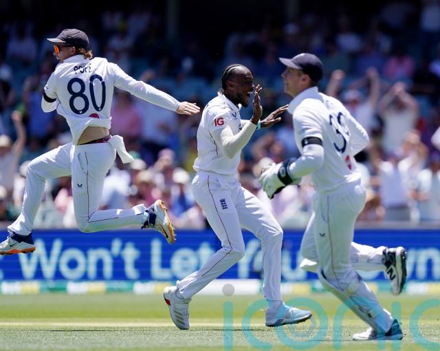England’s opening pair served up wildly differing new ball spells, Archer on the money as he gave just seven runs from six precise overs while Brydon Carse leaked 29 from five. Both found success, Archer hurrying Jake Weatherald into a rash shot against the short ball and Carse removing Travis Head thanks to Crawley’s instinctive take at short cover.