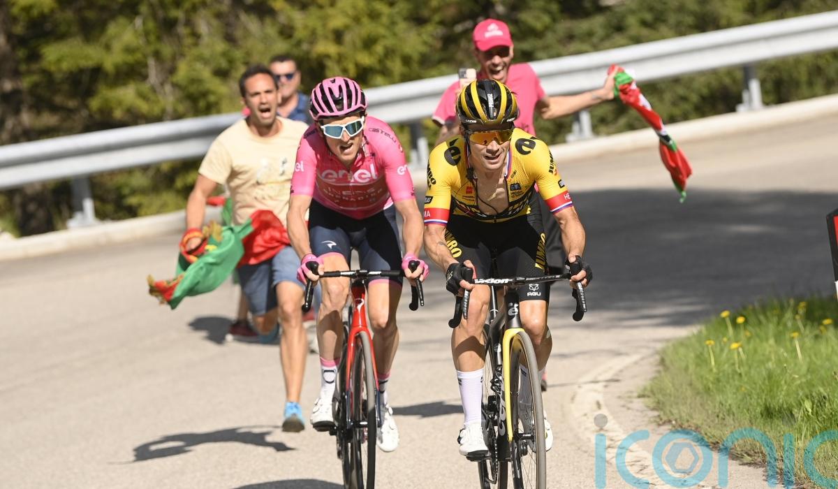 The leading duo had been part of a six-strong breakaway group who were allowed an advantage of up to six minutes on the 161km stage from Oderzo, but eyes were always further back on the first of the mountainous trio of stages that will decide who wears pink in Rome.