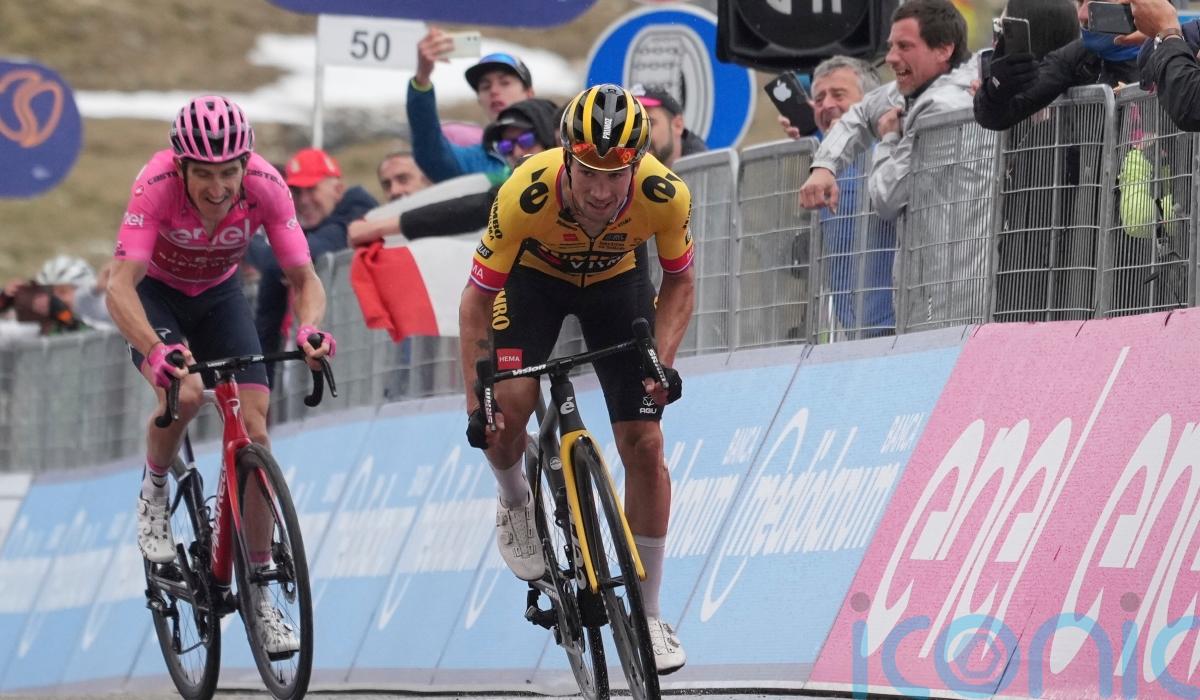 Thomas and Roglic traded attacks in the final kilometre of this beastly stage but at the very top of the Tre Cime di Lavaredo it was Roglic, who had changed bikes on the approach to the last climb to get better gearing, who was able to open up a three-second gap in the final few metres.