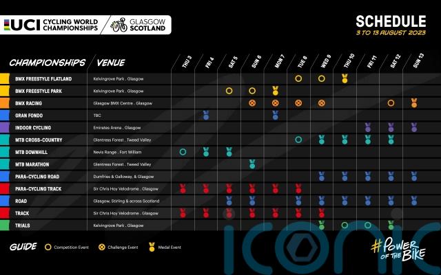 The first combined UCI Cycling World Championships has begun to take shape with the release of the schedule for the 11-day event that will be staged in Scotland next August.