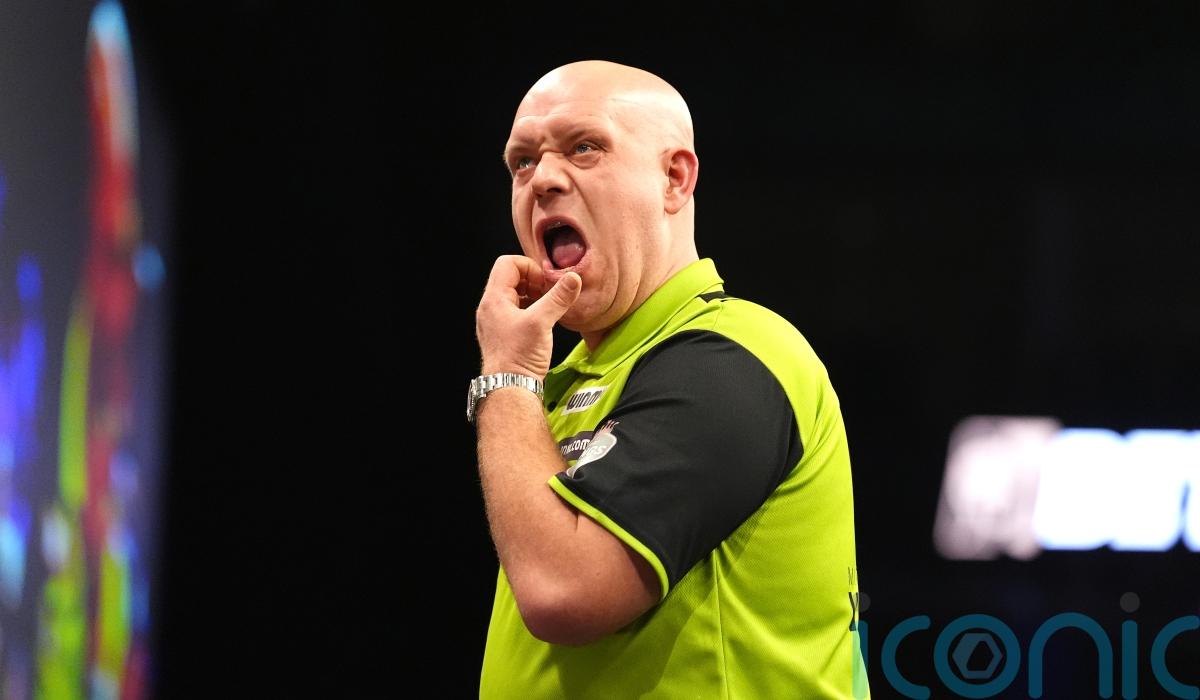 Michael van Gerwen crashed out of the Grand Slam of Darts in the group stage as Luke Littler missed double 12 for a nine-darter on an eventful night in Wolverhampton.