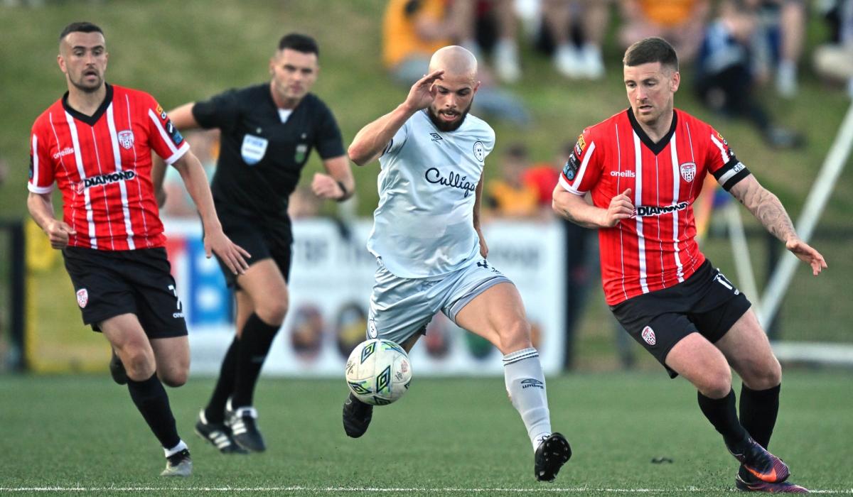 The visitors really should have taken the lead as the hour mark approached when Moylan sent a brilliant reverse pass in behind the Derry defence to put Robinson through on goal, but the finish was again lacking, with the striker shooting straight at Maher.