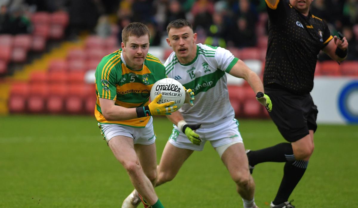 Subs: Dermot O’Kane for F Close (INJ 12), Rónán Close for Cathal Hasson (41), Eamonn Hasson for E Boylan (57), Christopher Dempsey for C Rafferty (59), Eoin McIlvar (1-0) for Dinal O’Kane (61),