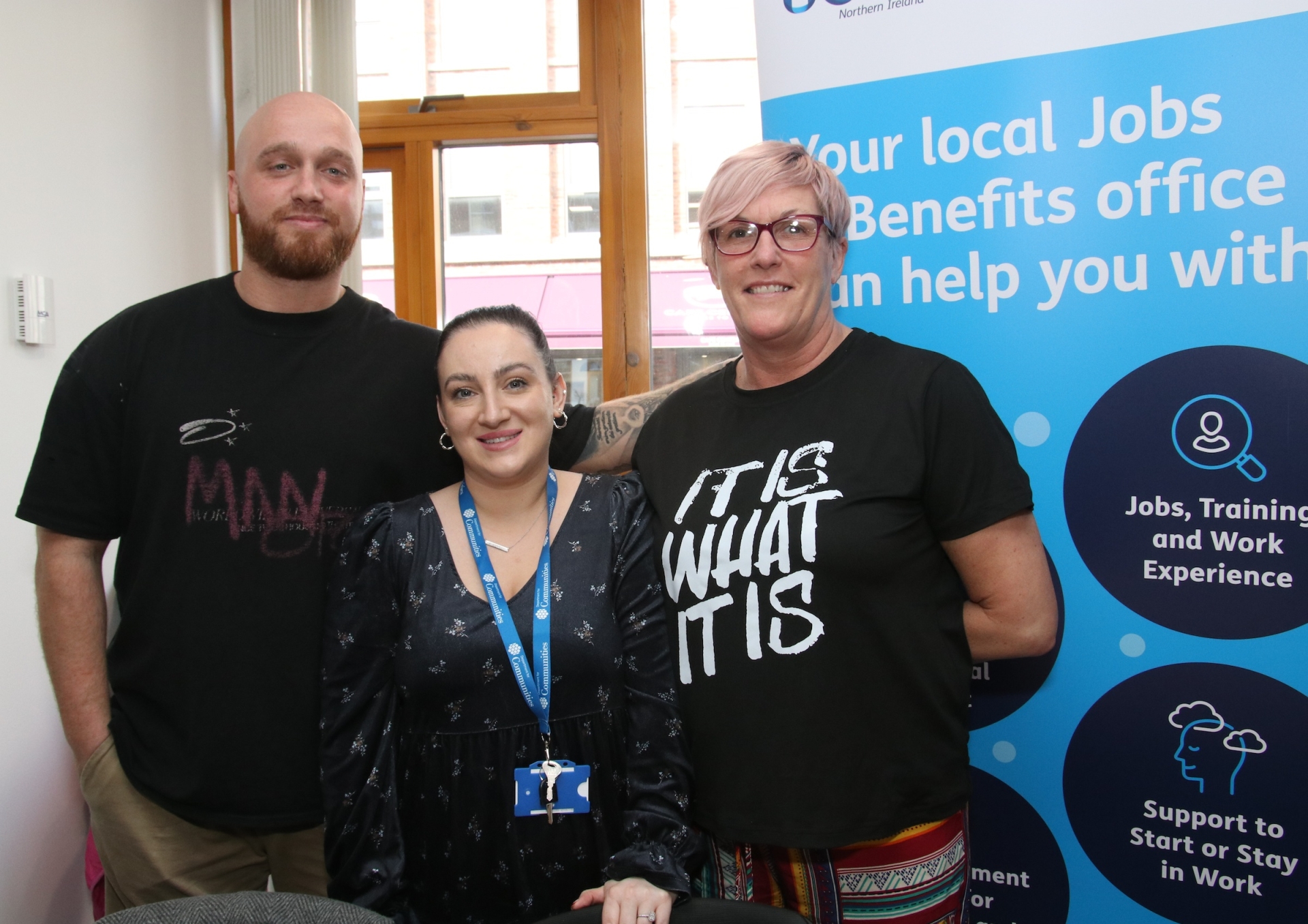 Adam Boyle, Ceallaigh Maxwell and Patricia O’Donaghue, Universal Credit team at the “People 1st Multi-Agency Information Fair” held in Holywell Trust. (Photo - Deirdre Heaney, nwpresspics)