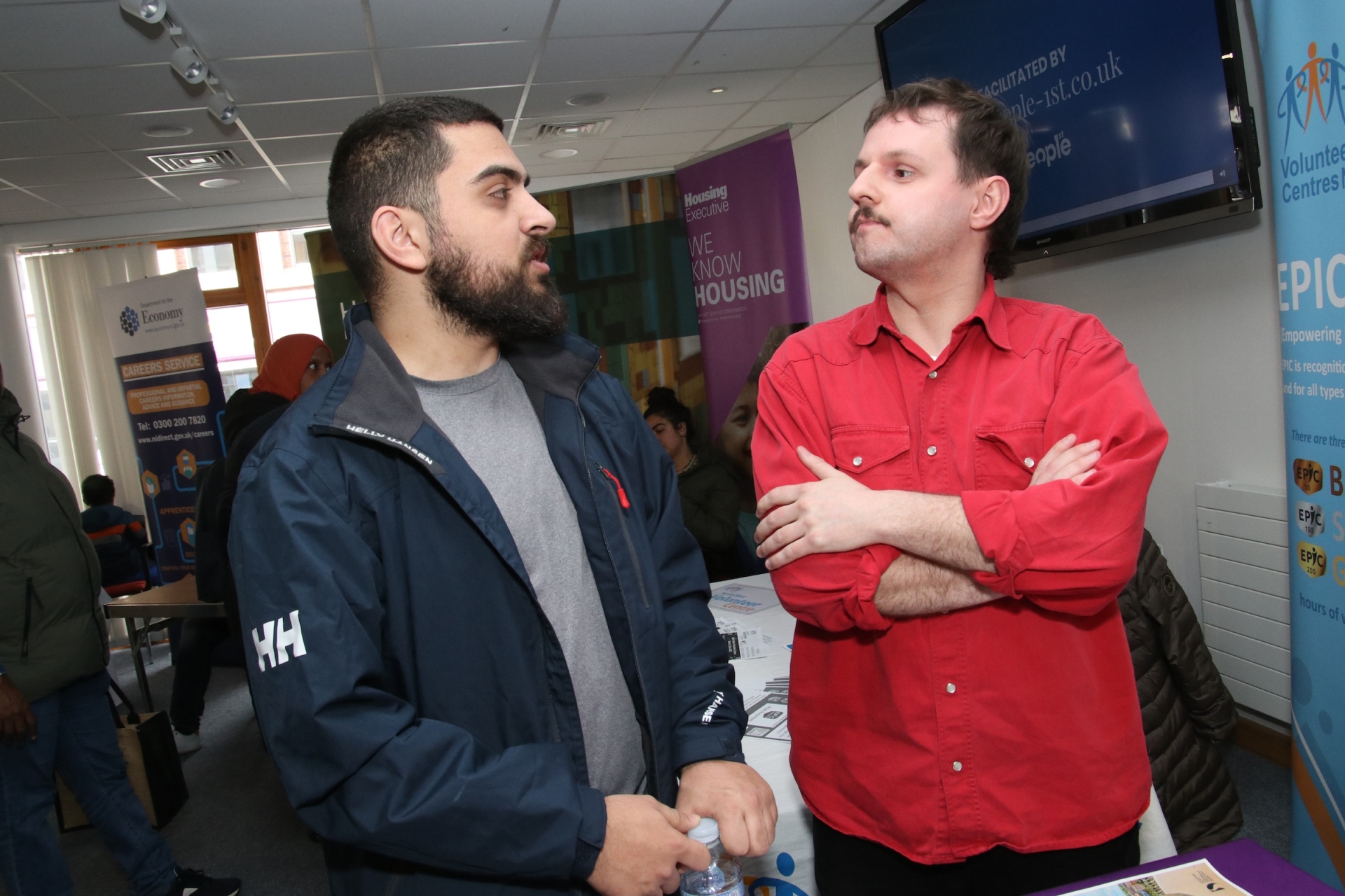 Matthew Hill, Kings Trust with an attendee at the “People 1st Multi-Agency Information Fair” held in Holywell Trust. (Photo - Deirdre Heaney, nwpresspics)