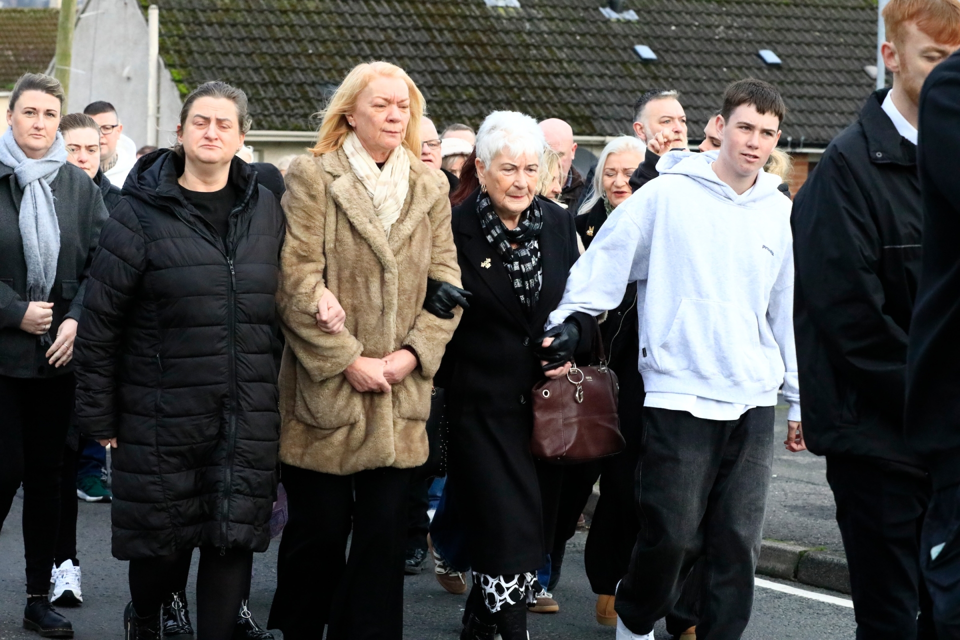 ABOVE: The family of former IRA hunger striker Brendan McLaughlin's following his coffin draped in the Tricolour from his home in the Top of the Hill to the Church of the Immaculate Conception, for Requiem Mass on Thursday morning. (Photo - Tom Heaney, nwpresspics)