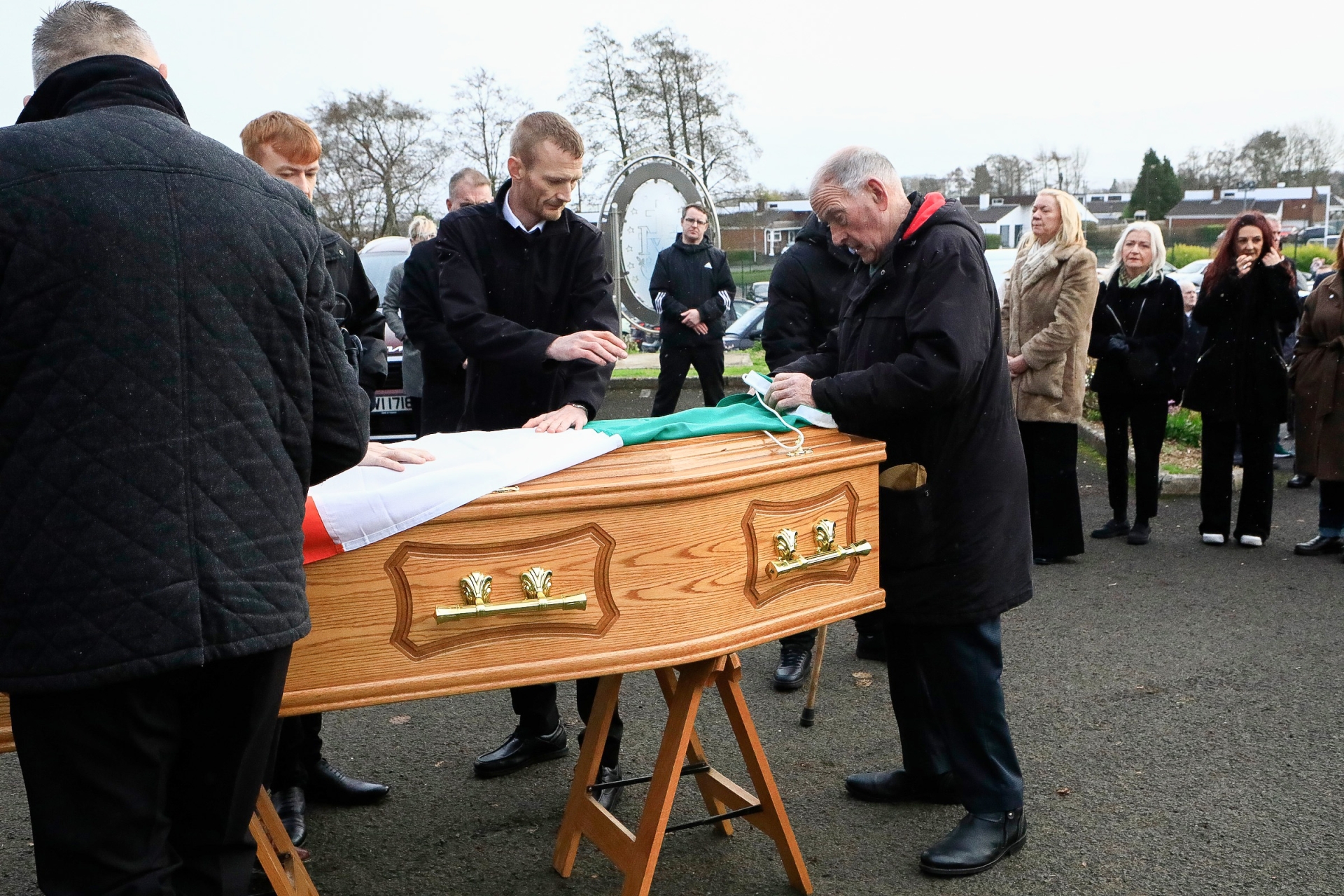 Mr McGonigle and Anthony Lancaster, leader of Republican Sinn Féin in Derry, placed the Irish tricolour on Brendan's coffin.