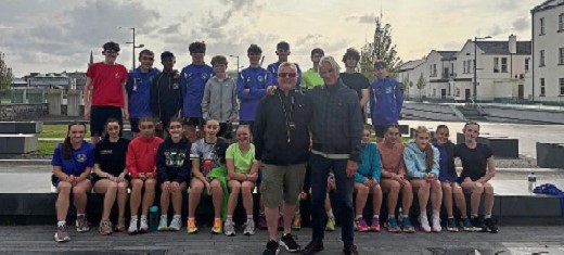 Foyle Valley AC Development Squad athletes meeting rock legend Paul Weller in Ebrington Square during the Modfather's visit to the city, where he paid homage to the late great Eamon Friel. Pictured with Weller is Foyle Valley AC Development Squad coach and local drummer, Tom Doherty.