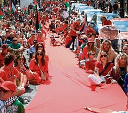 A section of the large crowd that turned Shipquay Street 'Red for Gaza'. PHOTO: Tom Heaney, nwpresspics.