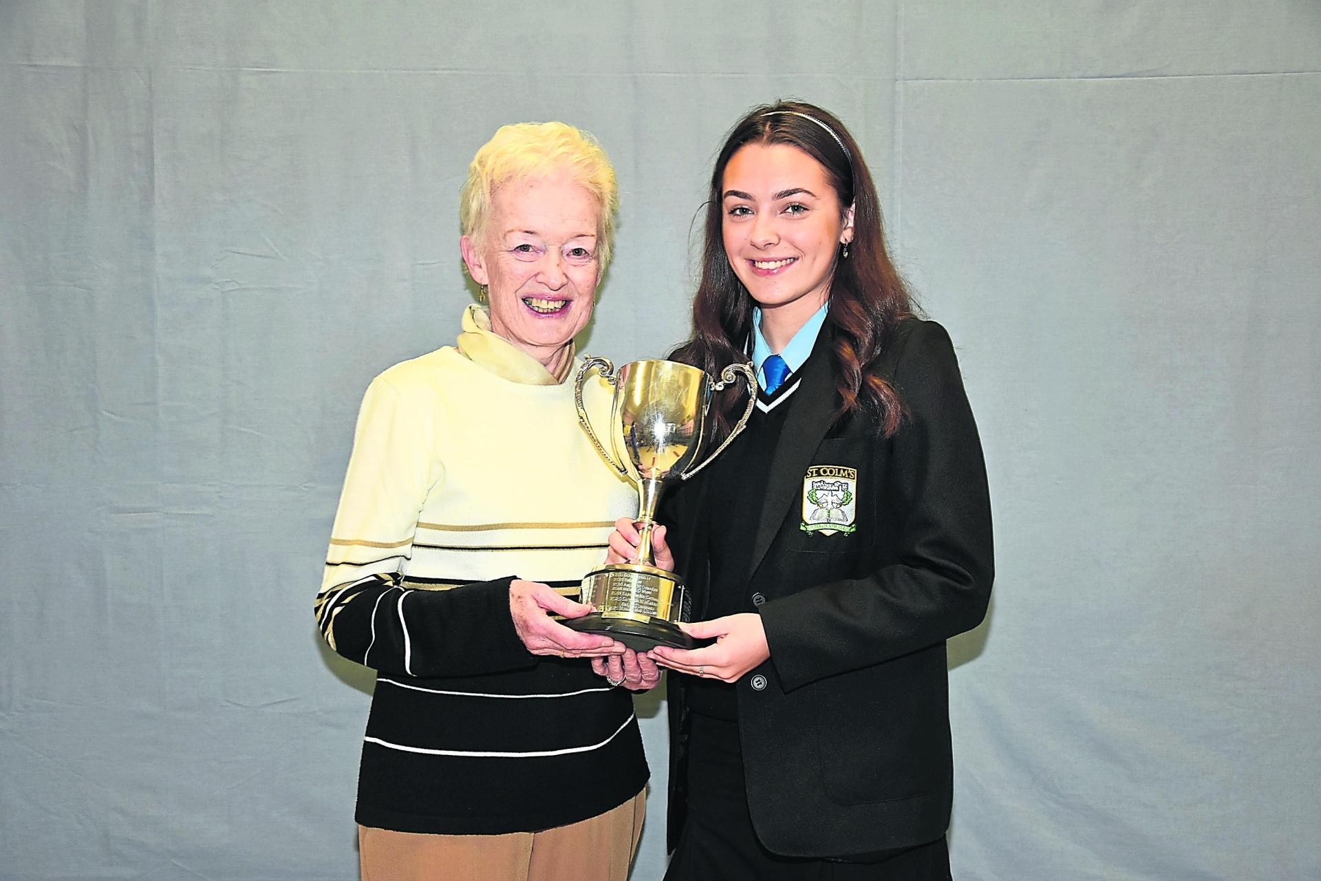 Mrs Geraldine Lagan presents the Dennis Lagan Cup to Leanne McCullagh.