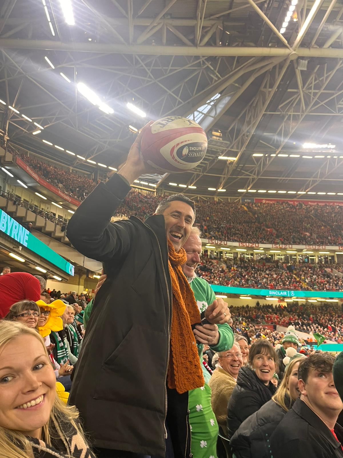 All smiles from Rory Kavanagh claiming a catch in the crowd in Cardiff as Ireland took on Wales