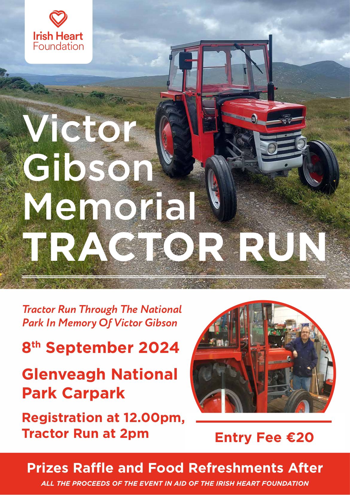 Registration is from 12 noon on the day and the cost is €20 per tractor which includes light refreshments from the Birch Tree Restaurant at the Visitor Centre. The organisers are delighted to be hosting the tractor run in association with the Irish Heart Foundation and all proceeds on the day will go towards this worthy cause.
