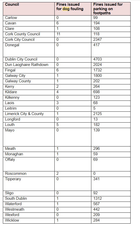 Donegal County Council issued 417 fines for motorists parking on footpaths in 2024. Yet, strikingly, the local authority did not issue a single fine for dog fouling during the same period.