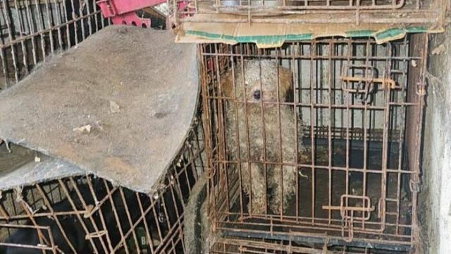 Dogs were found locked in rusty cages stacked one on top of the other in west Donegal. Photo: An Garda Síochána Donegal