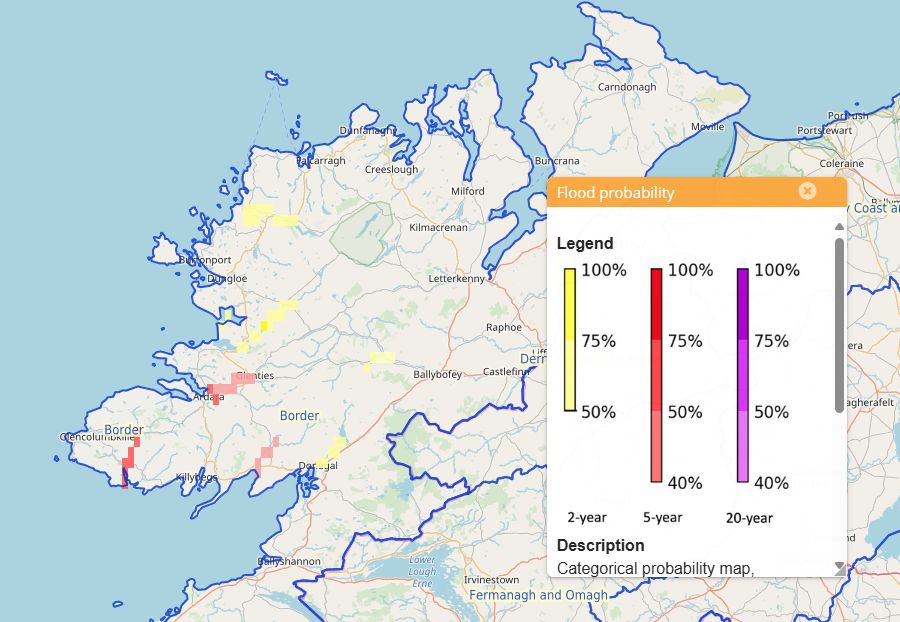 The European Flood Awareness System (EFAS) has issued a flash flooding warning for the border region in the following river systems: Glen, Eany, Eske, Owenea, Owentocker, Gweebarra, Crolly and Reelin.