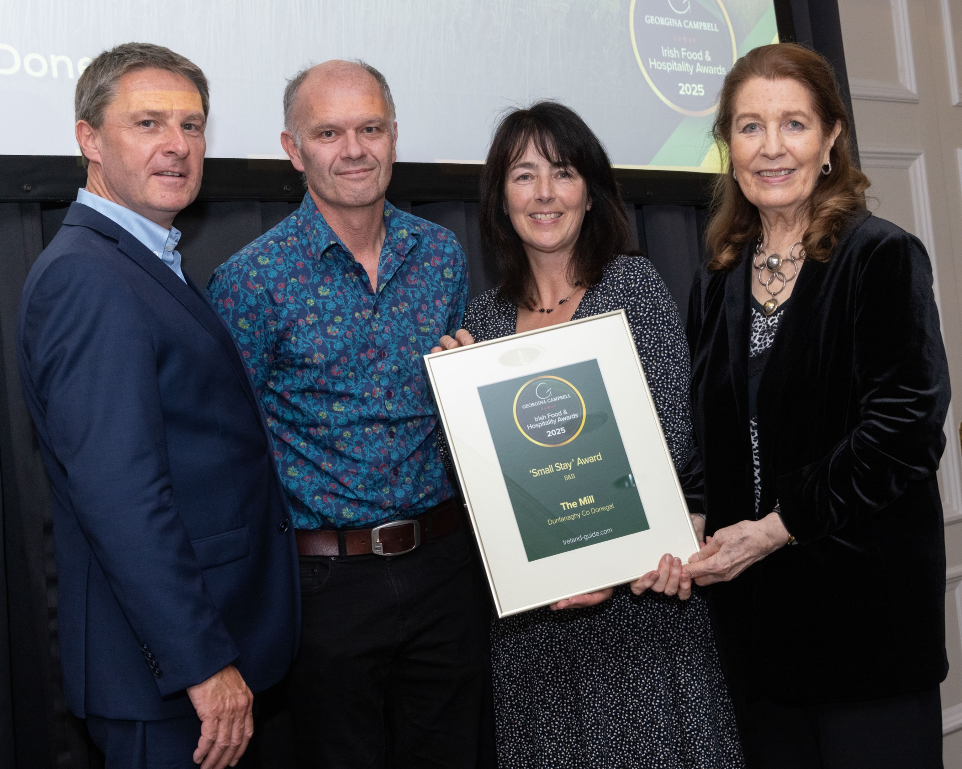 Harvey’s Point Resort at Lough Eske won Best 4-Star Hotel 2025. The Small Stay Award 2025 went to The Mill in Dunfanaghy.