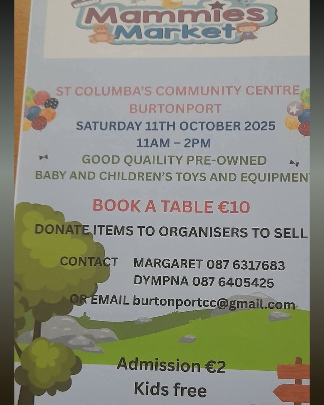 Mammies Market is set to take place at St Columba's Community Centre from 11am until 2pm.