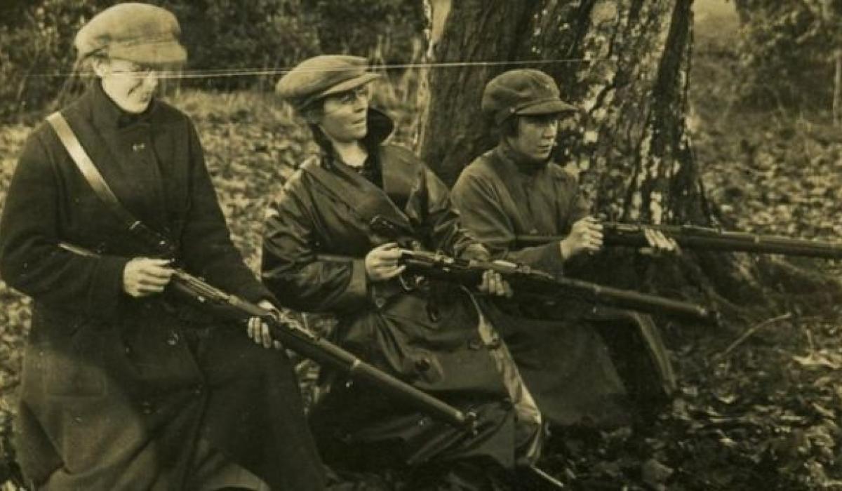 Eithne Coyle (centre) at rifle practice at an IRA training camp in Duckett's Grove, County Carlow, in 1922