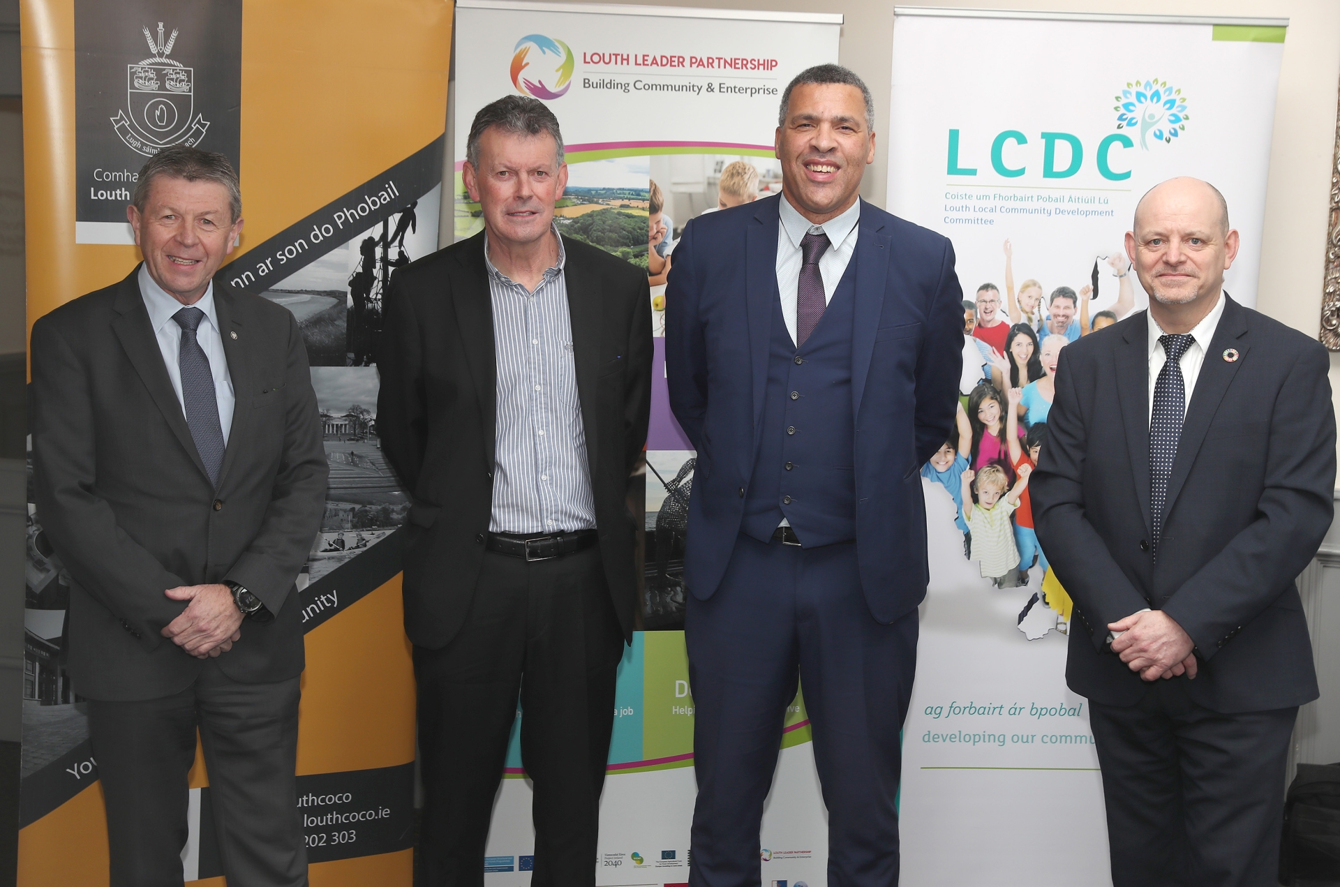 Above: Paddy Donnelly, Louth Local Community Development Committee Chairman, Michael Keogh, Chair of Drogheda Implementation Board, Rob Worrall, Consultant Trainer, Ciaran Reid, CEO, Louth Leader Partnership