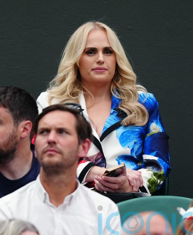 Rebel Wilson, 44, watched today’s match between Novak Djokovic and Vit Kopriva on centre court – the game saw Djokovic defeat Kopriva 3-0.