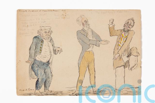 The sketches show Dickens and his theatre company in the midst of rehearsals for stage productions including Dickens’ Mr Nightingale’s Diary and The Frozen Deep.