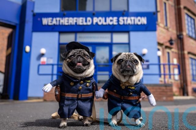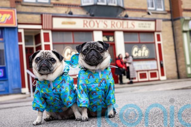 Weatherfield’s police station saw pugs Lilly and Lulu dressed as police officers and further down the street, owner Brad Wood posed with his dog Bobby, a French bulldog, outside The Kabin newsagent.