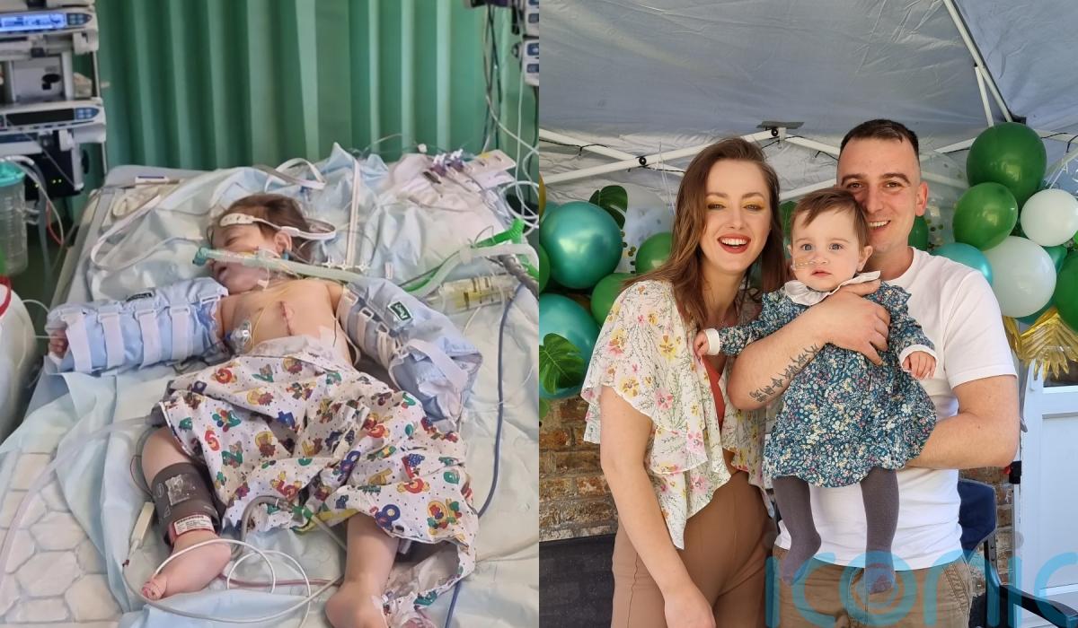 A toddler who received her father’s kidney in an extremely rare procedure after nearly dying from renal disease has transformed from a “caterpillar into an amazing butterfly”.