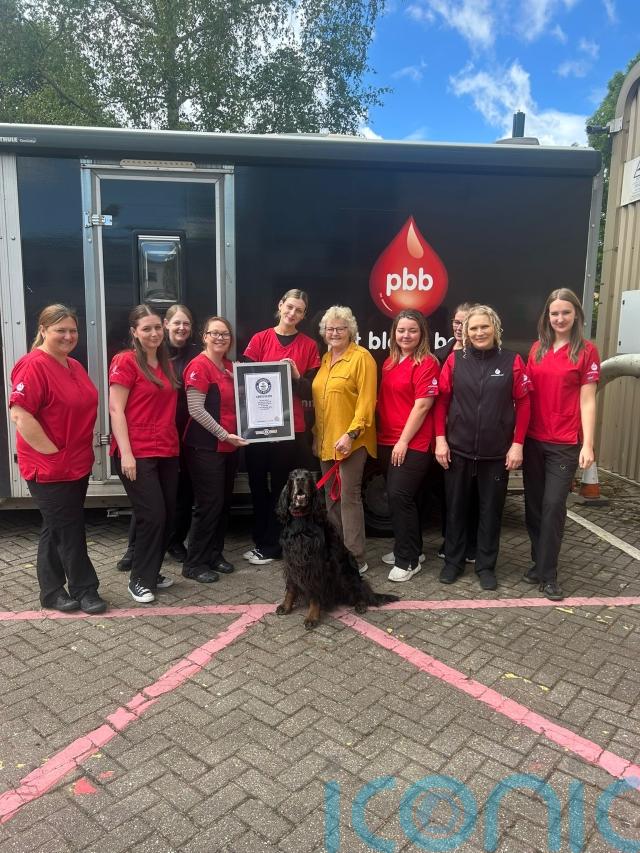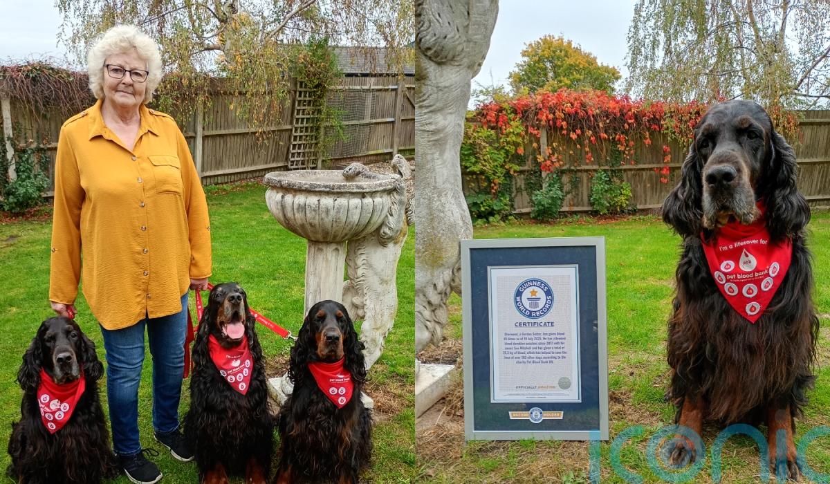 Sue Mitchell from Bedfordshire is the proud owner of Gordon setter Sharwood, nine, who has officially been awarded a Guinness World Record for the most blood donations by a dog. Sharwood donated to the Pet Blood Bank around six times per year, and saved the lives of almost 200 dogs before retiring from donating.