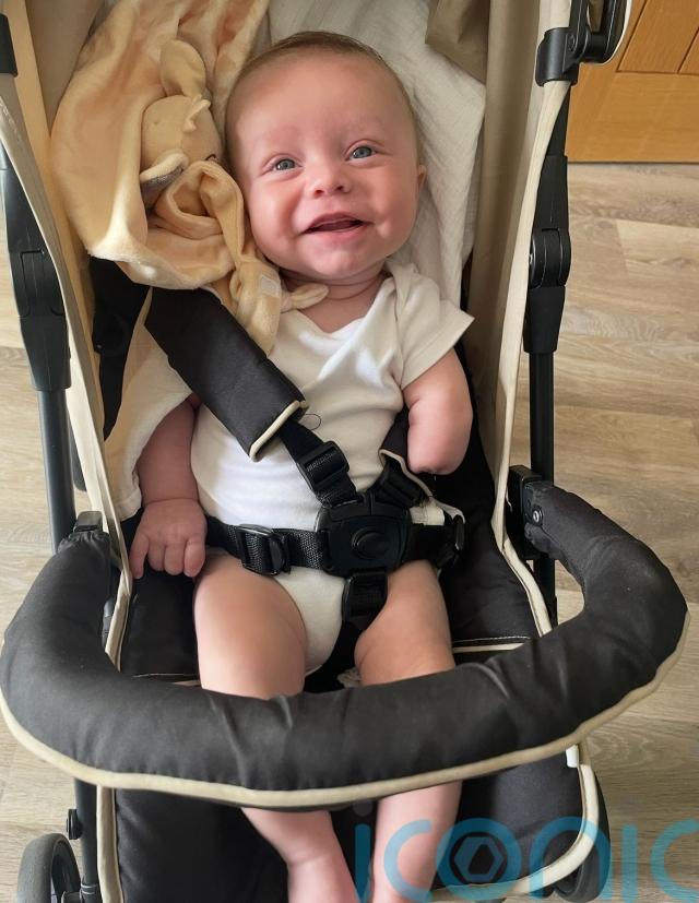 Parents who discovered their unborn son’s hand had been “severed” in the womb by a band of tissue are “so relieved” he has arrived “happy and healthy” and are determined that nothing will ever hold him back.