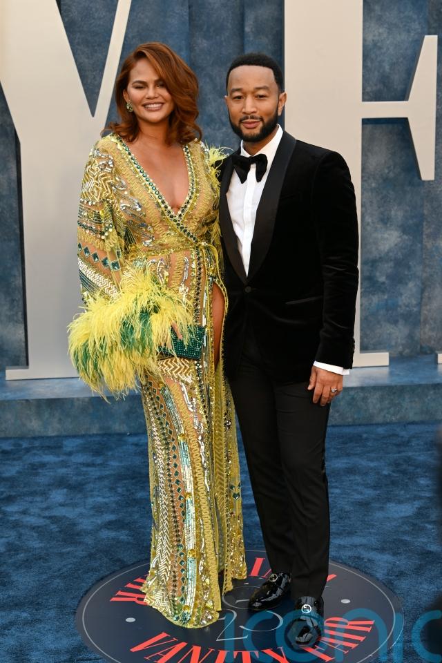 Debuting a brighter copper hair colour, presenter and cookbook author Chrissy Teigen wore a green dress from the Zuhair Murad couture catwalk.